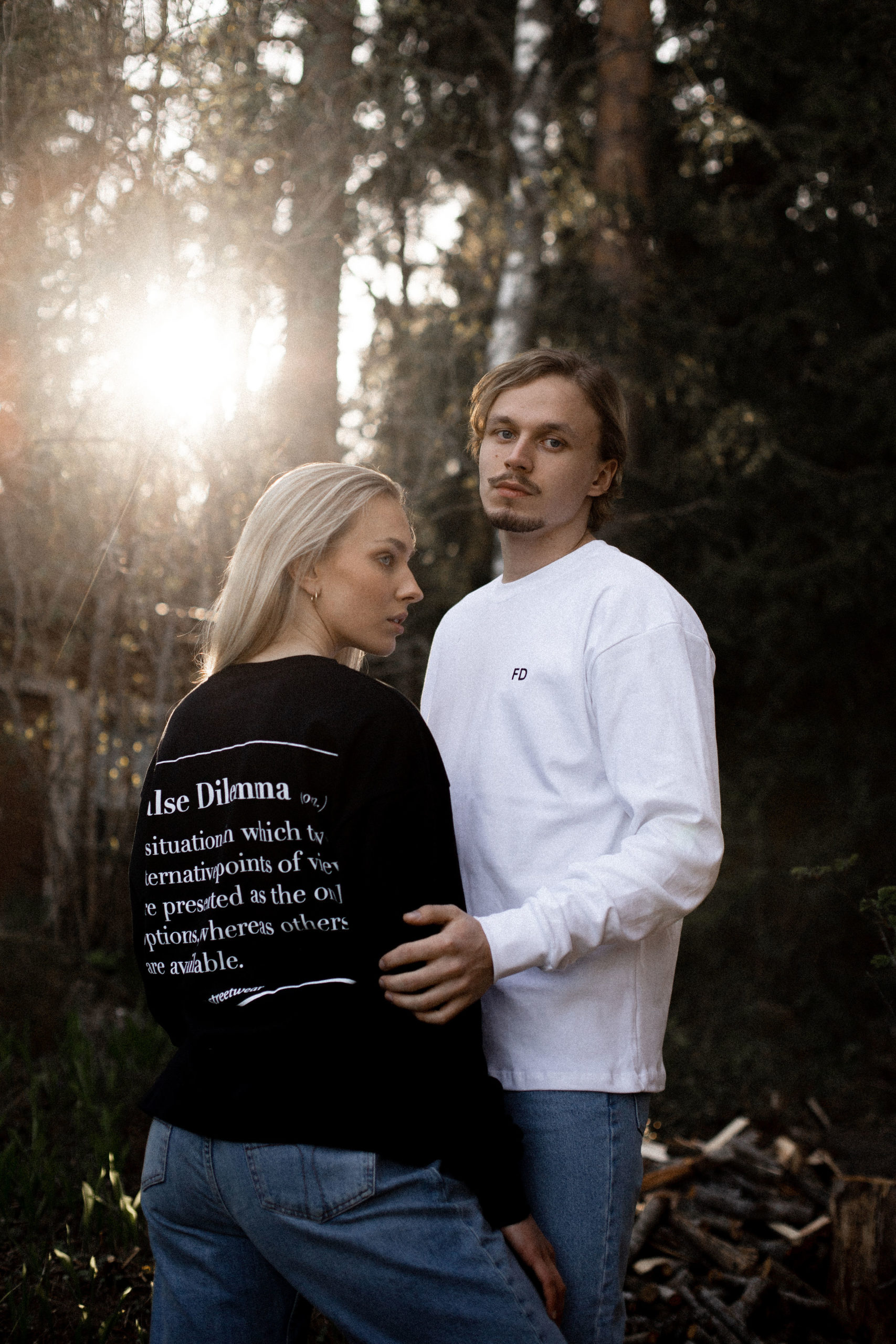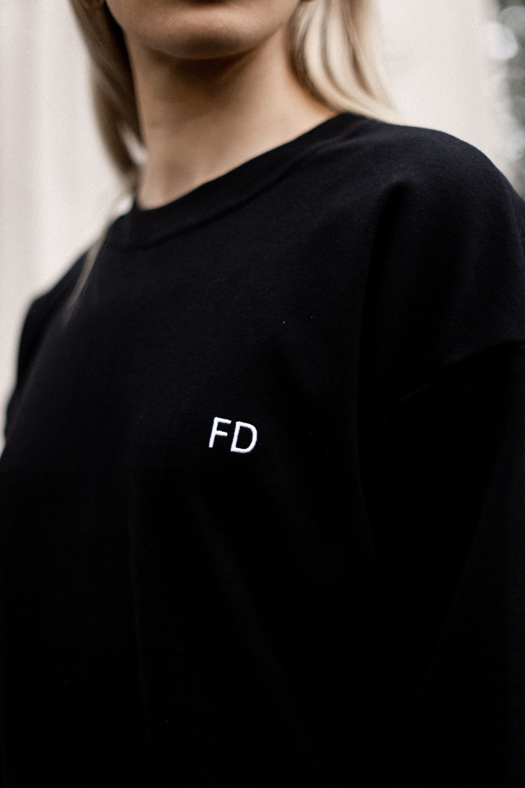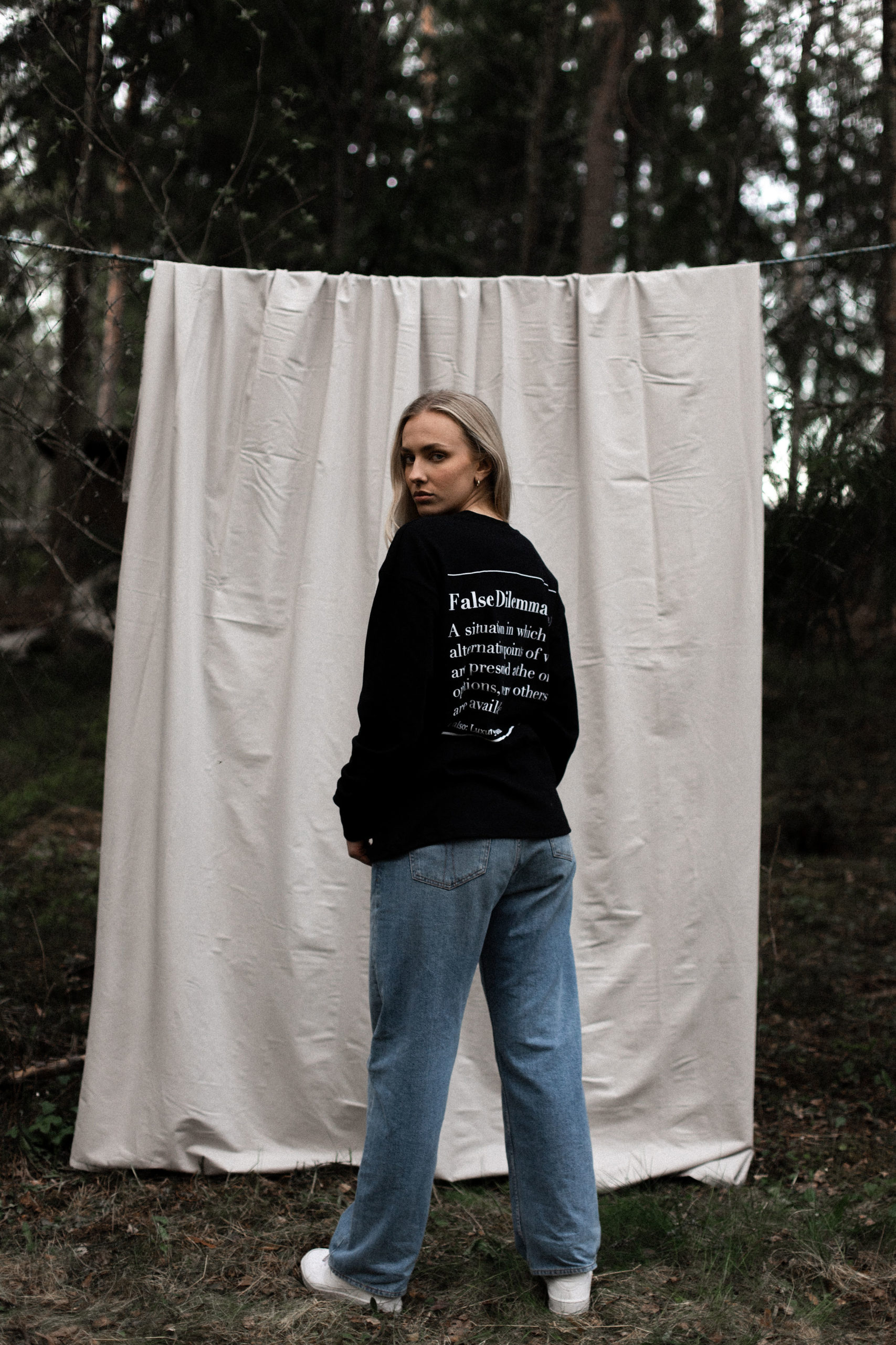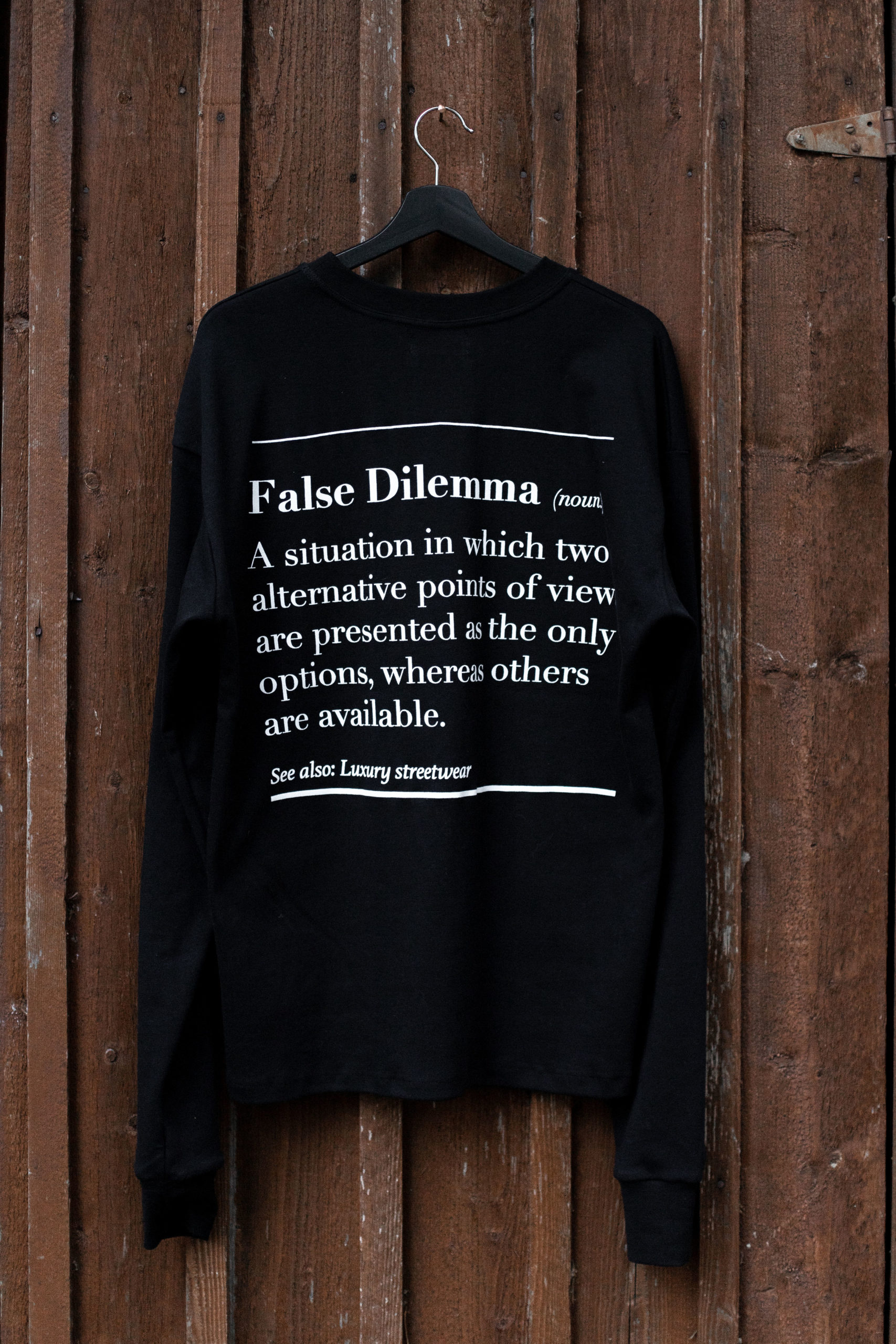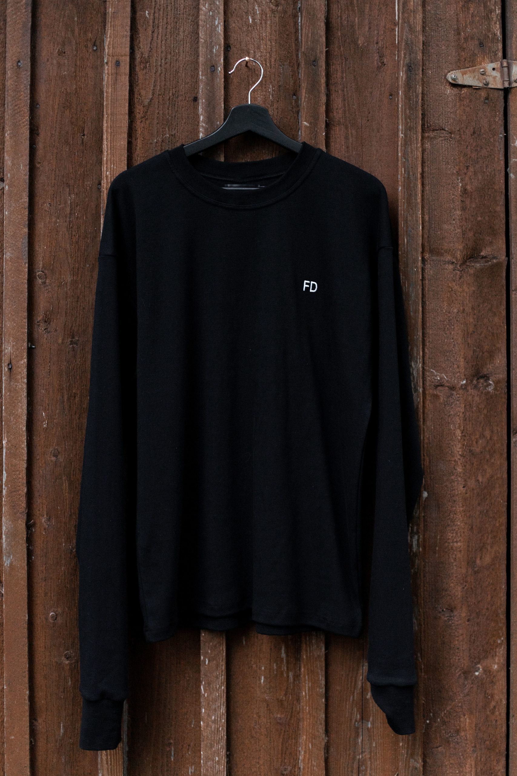 Black longsleeve T-shirt with description print on the back and embroidered acronym on the chest. A slightly oversized fit. Fits true to size.